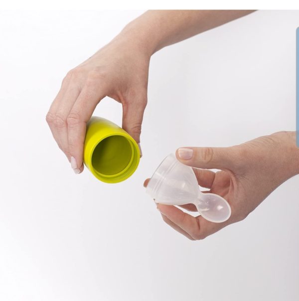 Boon Squirt Silicone Baby Feeding Spoon isn’t just a spoon. It takes baby food, removes the jar and the mess, packs it into a single utensil and with one squeeze—boom! You get easy, one-handed feeding. Large, easy-to-clean bulb holds up to three ounces of stage 1 or 2 baby food. This dishwasher-safe silicone spoon is made without BPA, PVC and Phthalate and can be hand washed in warm, soapy water. Spoon tip easily screws onto bulb for no fuss preparation and can be boiled or sterilized.