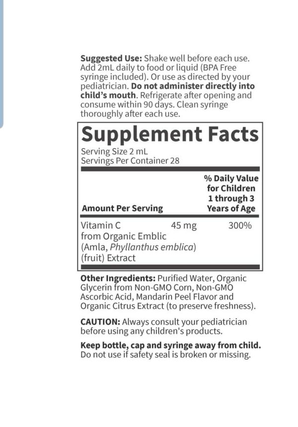 Garden of Life Baby Vitamin C Liquid for Baby’s Immune Support, Liquid Vitamin C Drops for Babies, Immune Support from Organic Amla Fruit, Non-GMO, Vegan, Gluten Free Drops, 56 mL (1.9 fl oz) Liquid