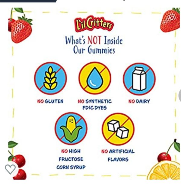 Complete multivitamin with essential nutrients including Vitamin A, Vitamin B-6, Vitamin B-12, Vitamin C, Vitamin D3 and LuteinNaturally sourced colors and natural flavorsChefsBest Excellence Awardǂ winning taste – cherry, orange, strawberry, pineapple and blueberryNo high fructose corn syrup, no synthetic (FD&C) dyes, no artificial flavors and no glutenA hefty serving of 11 essential vitamins and mineralsHelps to meet daily recommended values of vitamins and minerals when diet alone falls short